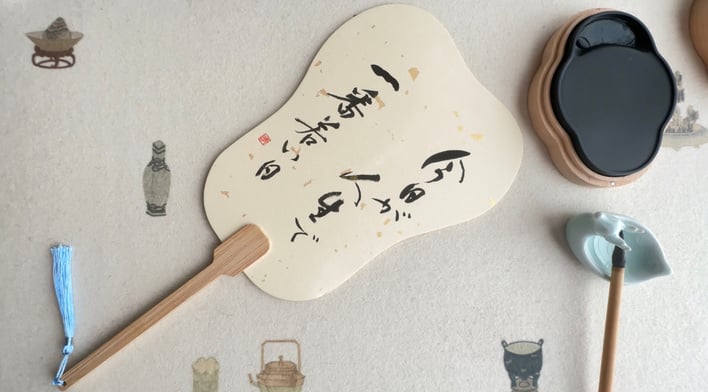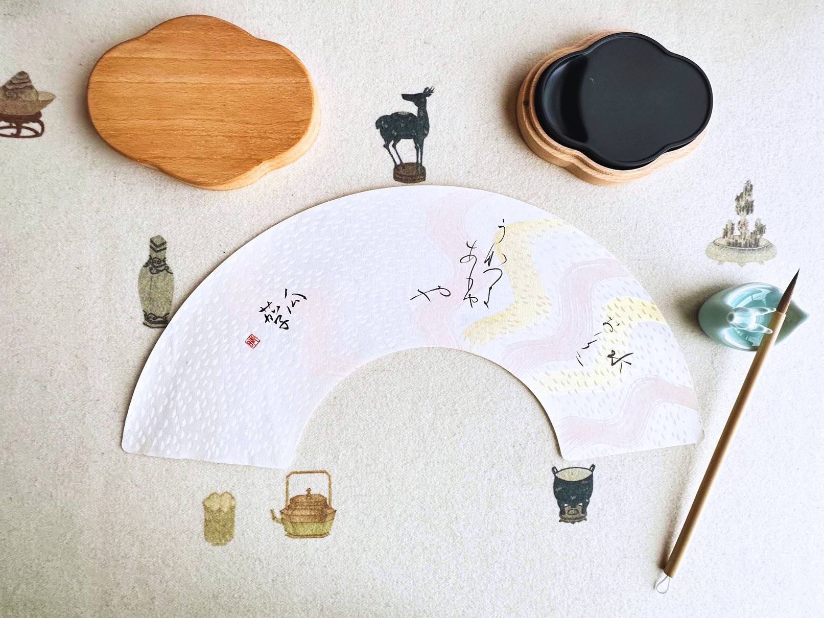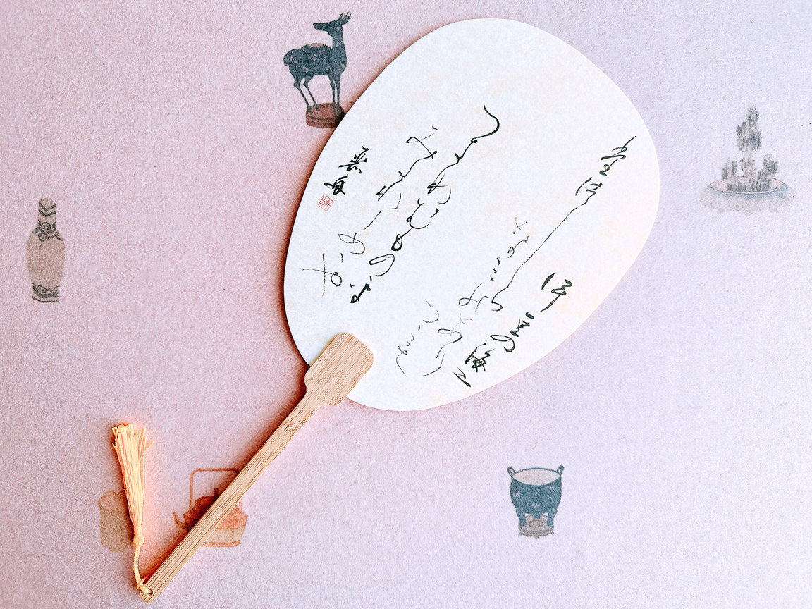 扇面に書いて