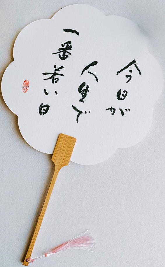 実演販売①学長名言うちわ