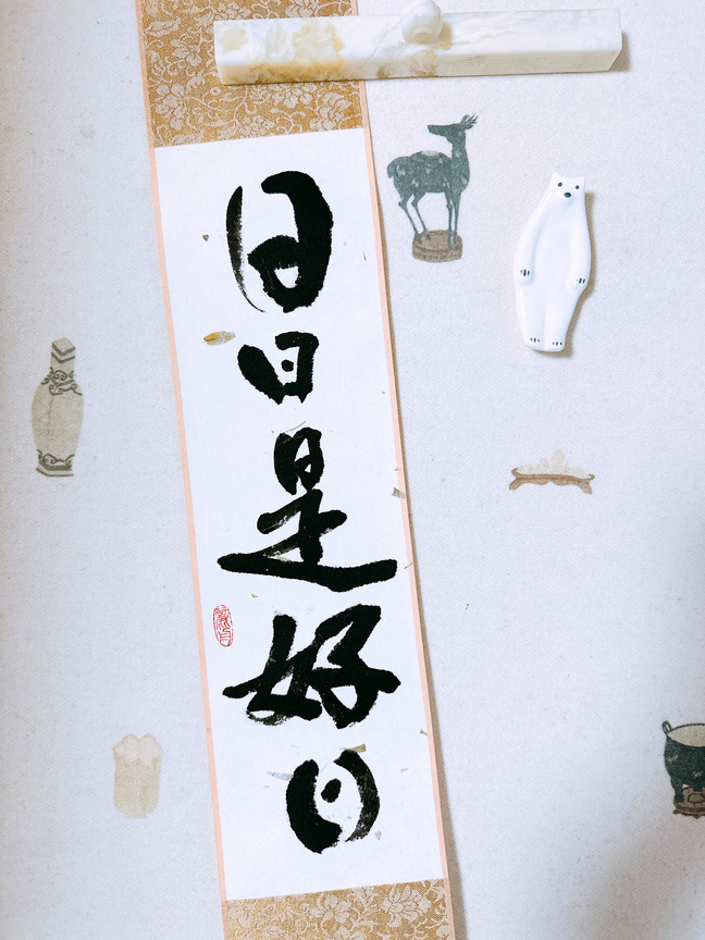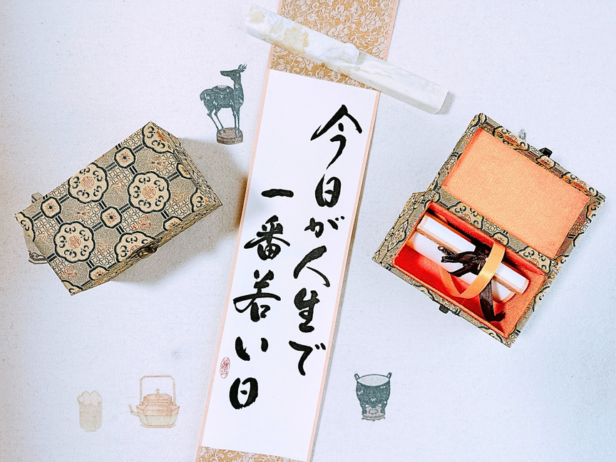 実演販売②学長名言掛け軸箱付